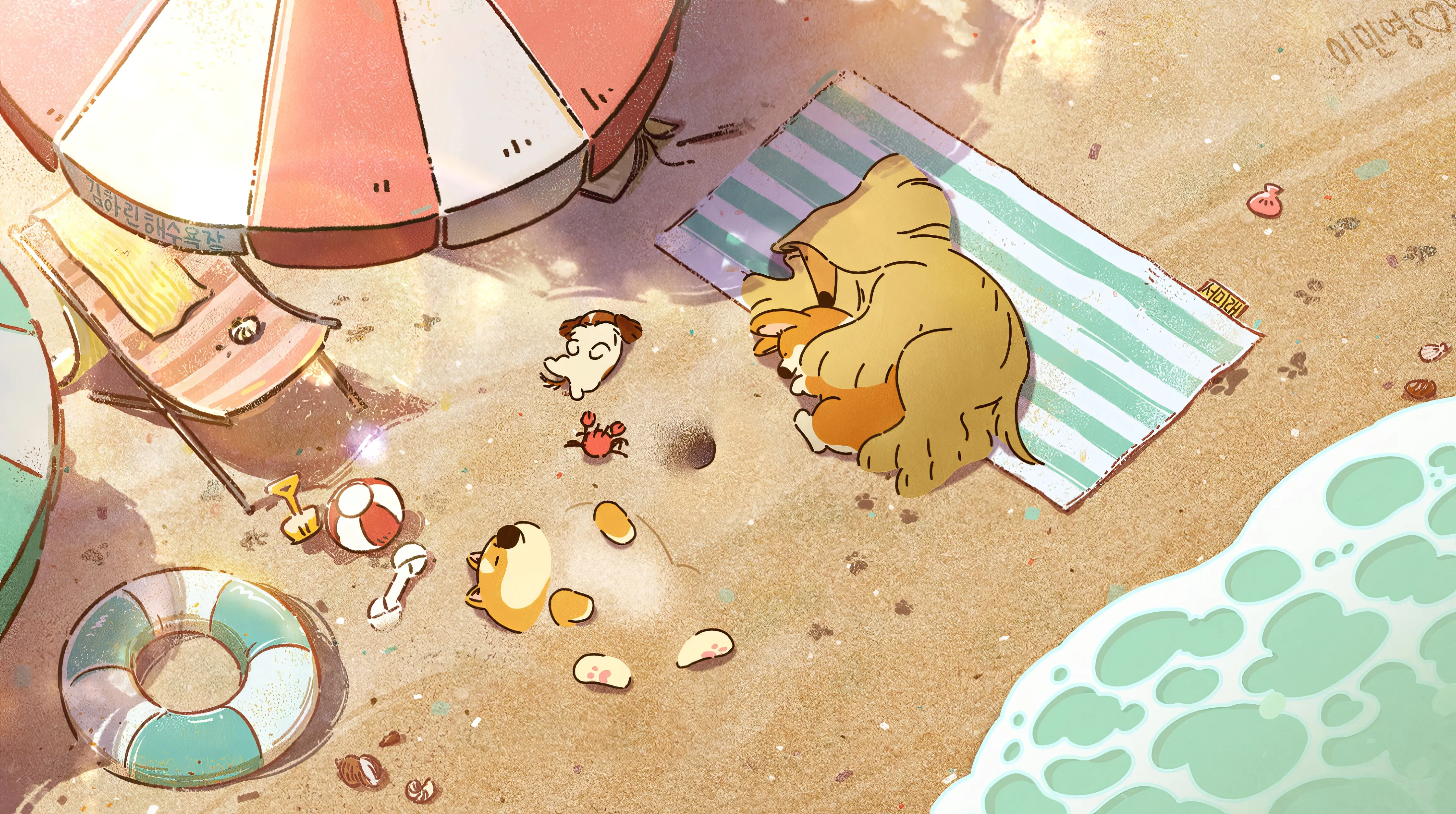 海滩 绘画 动物 电脑 贴纸 小狗 4K壁纸