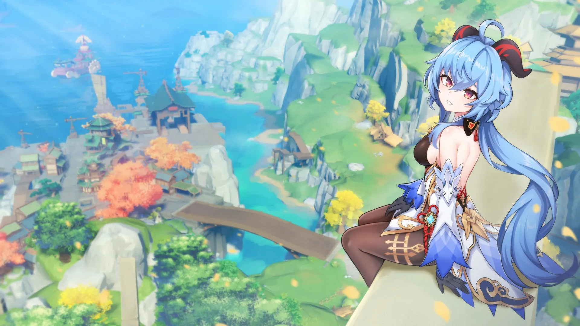 蓝头发 红眼睛 原神 干鱼 原神 魔角 动漫女孩