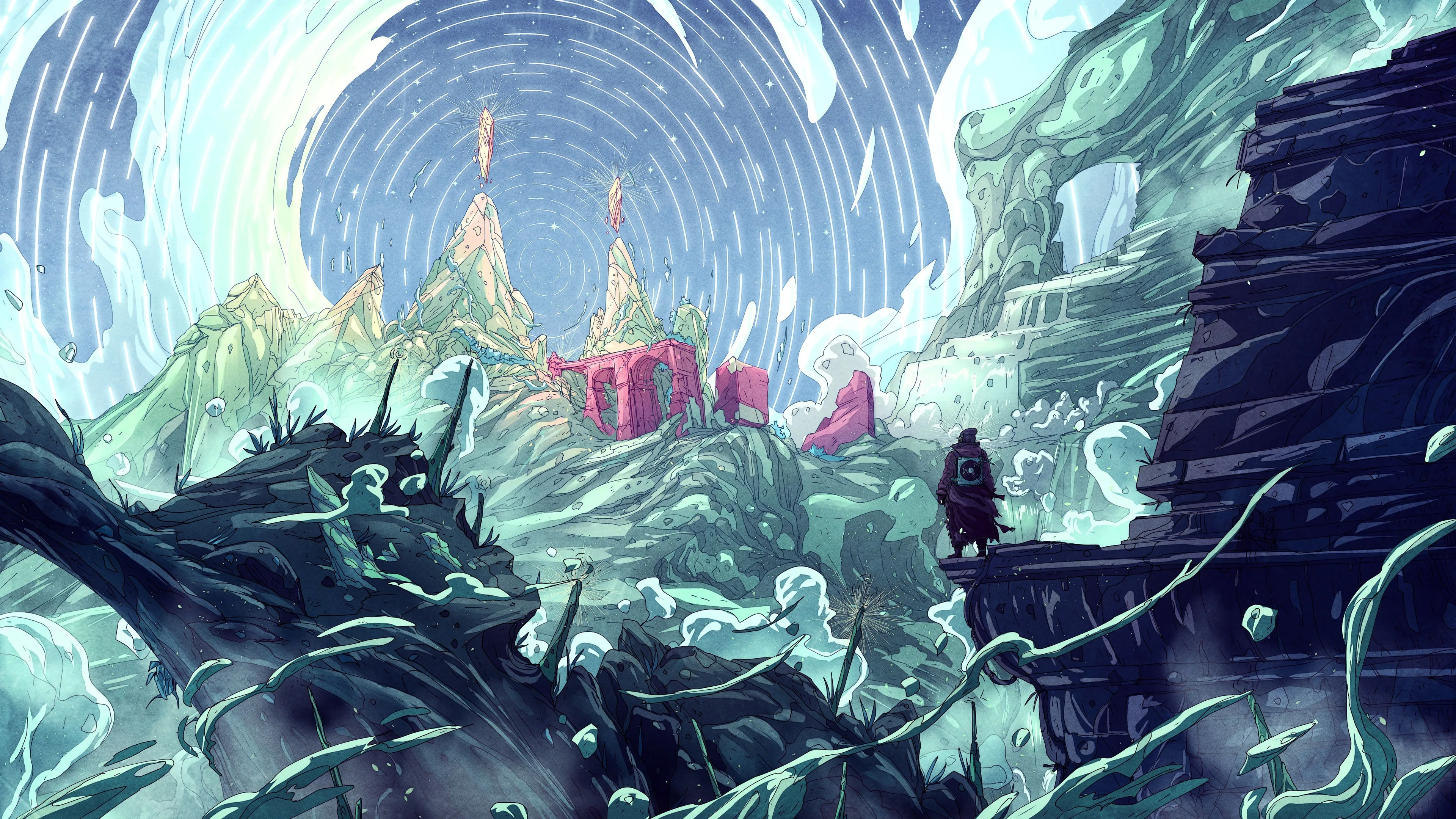 AI艺术 幻想艺术 山 废墟 现实 星夜 绘画 艺术 抽象 电脑壁纸 4K壁纸
