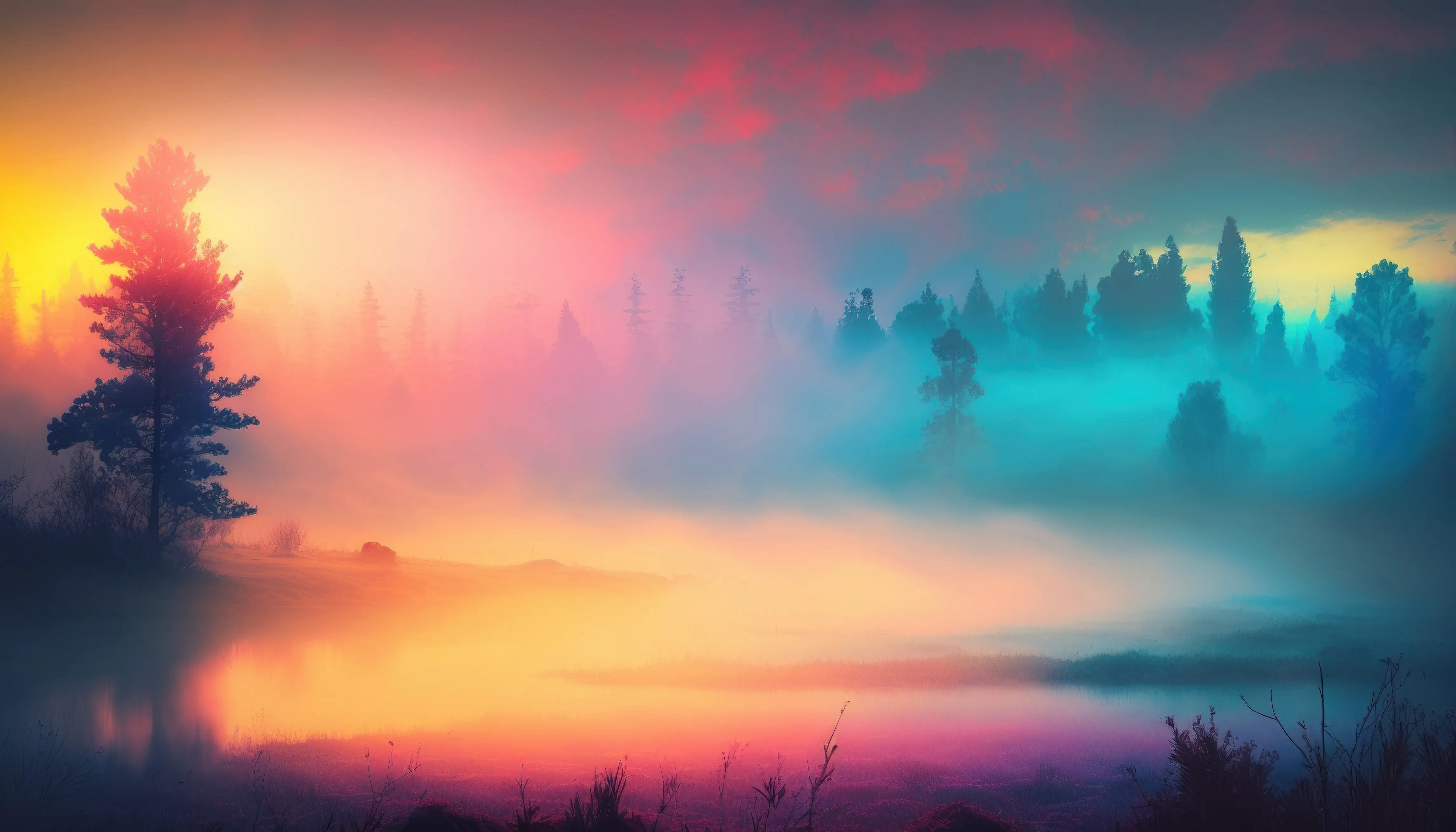 艺术 薄雾 早晨 日出 风景 湖泊 阳光 自然  4K壁纸