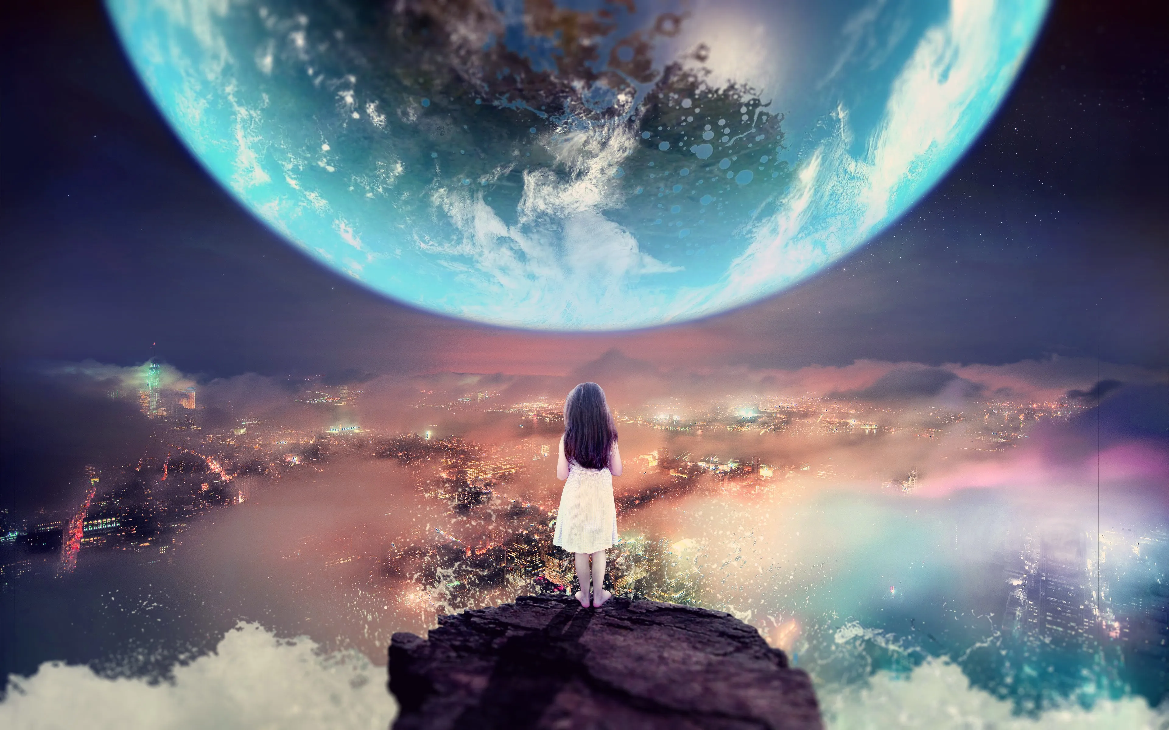 地球 世界 薄雾 云 自然 AI艺术 悬崖 海洋 城市 夜晚 行星 宇宙 电脑壁纸 4K壁纸