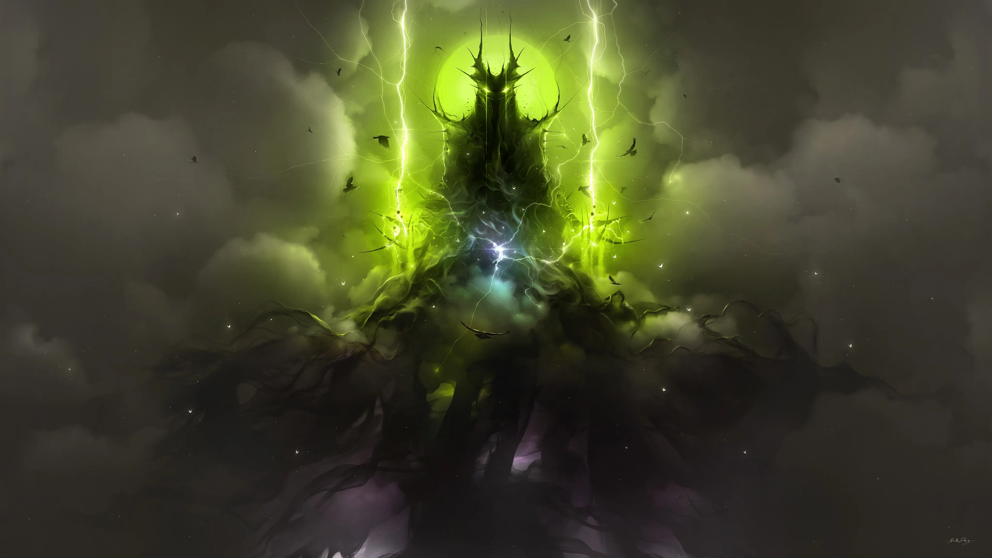 虚构 灵魂 AI艺术 幻想艺术 黑暗 魔法 闪电 绿色 云 电脑壁纸 4K壁纸