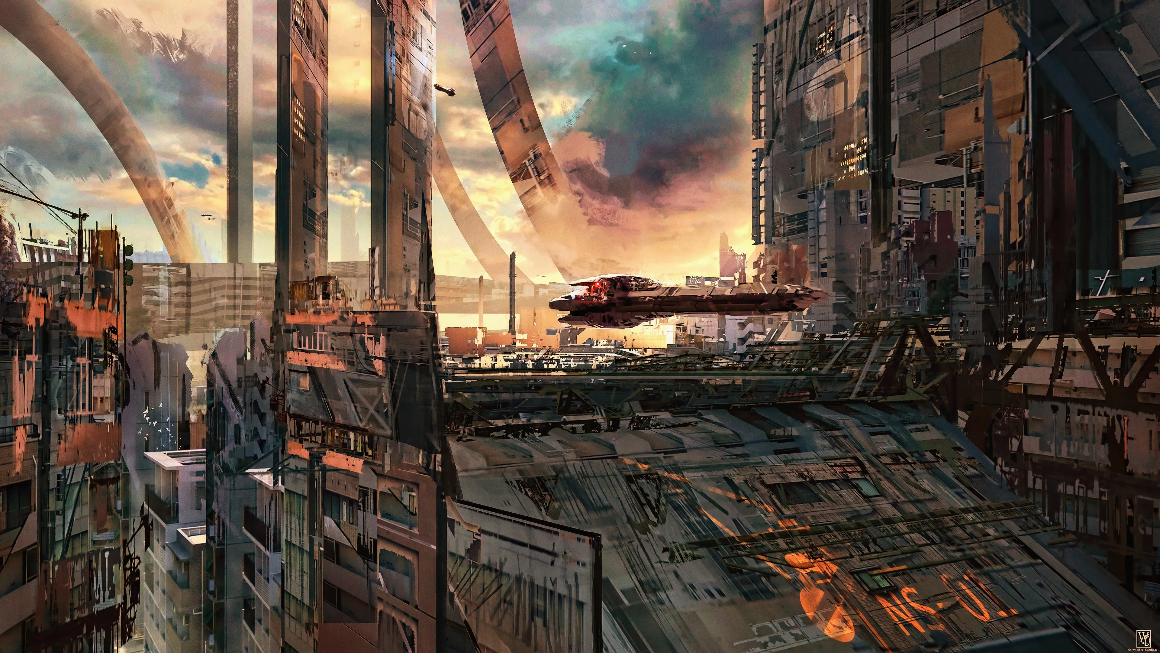 科幻 AI艺术 概念艺术 未来 奇幻艺术 日落 宇宙飞船 赛博朋克 网络  电脑壁纸 4K壁纸