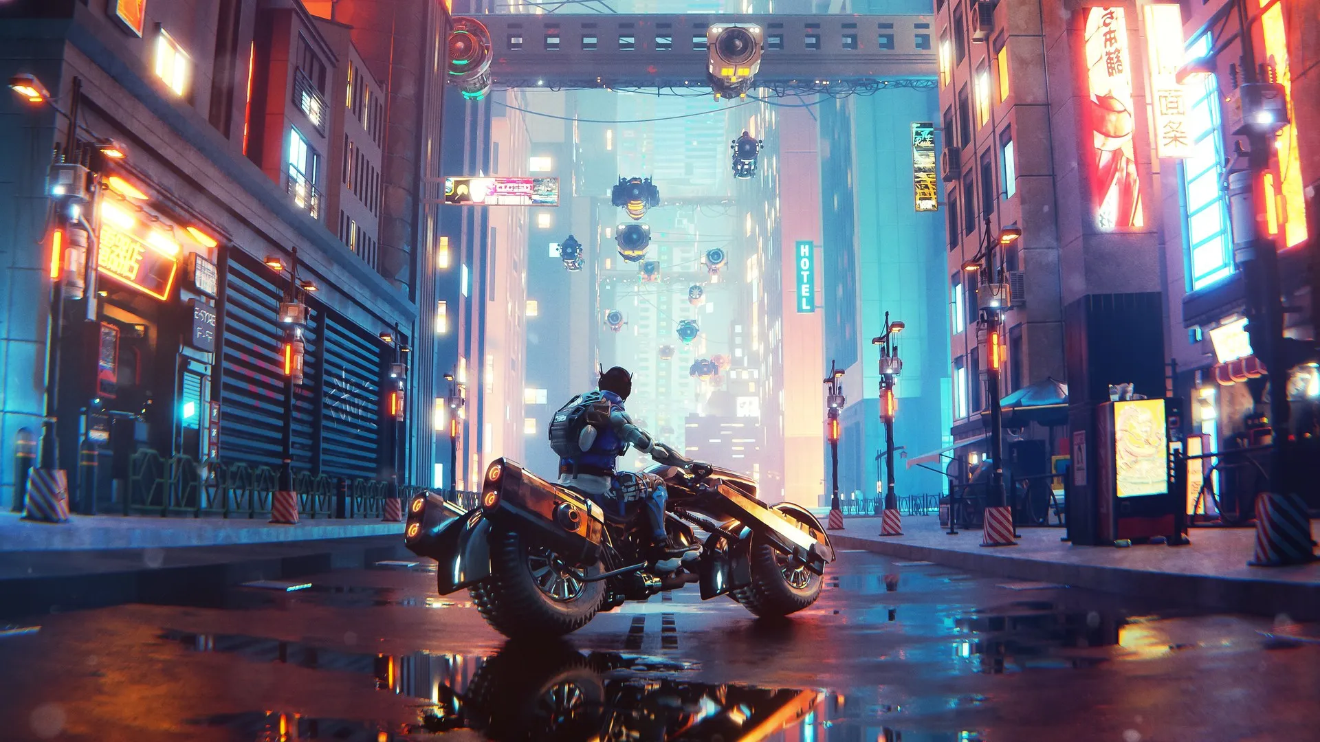 AI艺术 插图 城市 未来主义城市 赛博朋克 城市灯光 反射 幻想城市 街道  电脑壁纸 4K壁纸