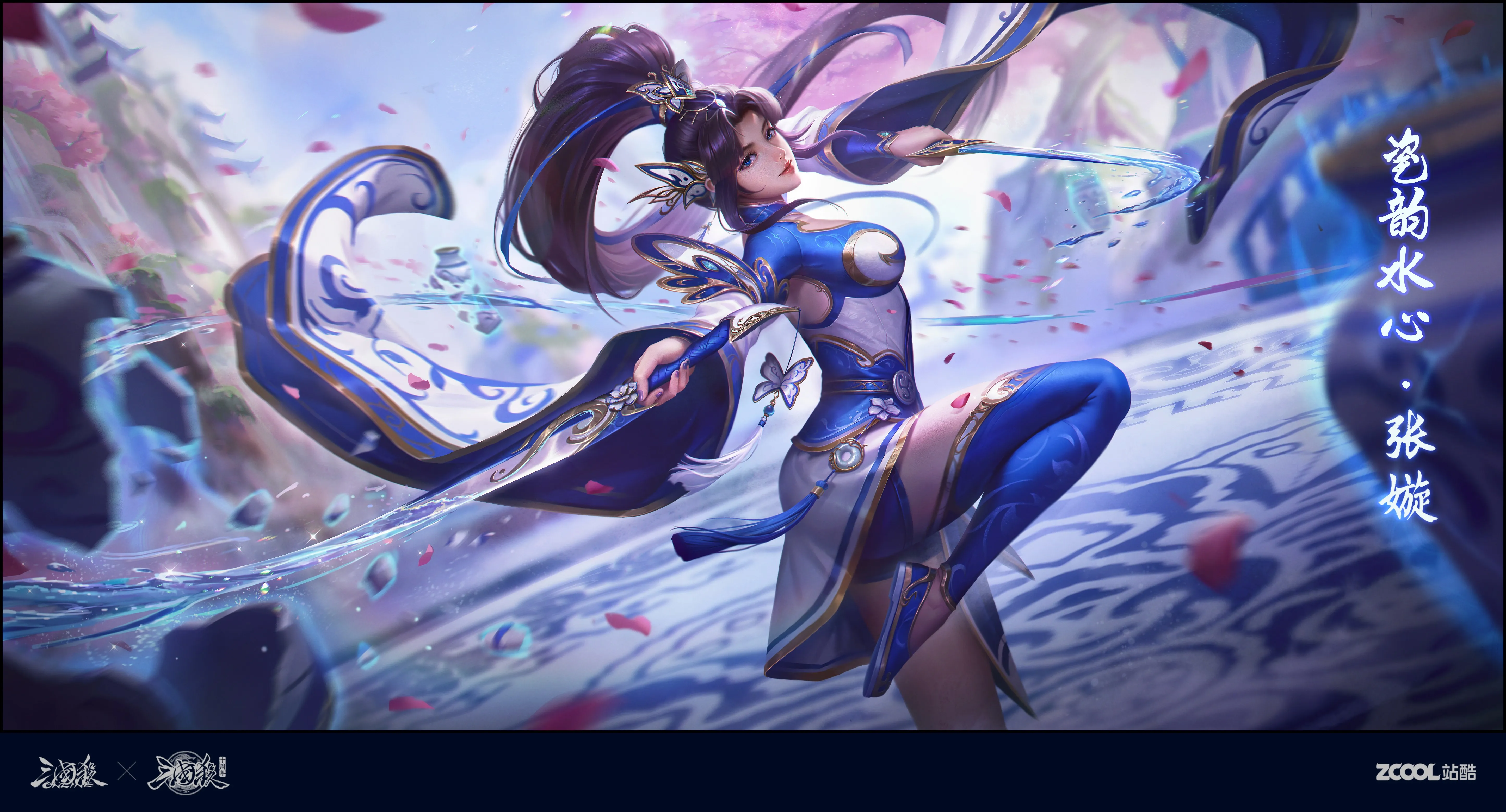 游戏 角色 马尾辫 长发 水 花瓣 天空 云 武器  电脑壁纸 4K壁纸